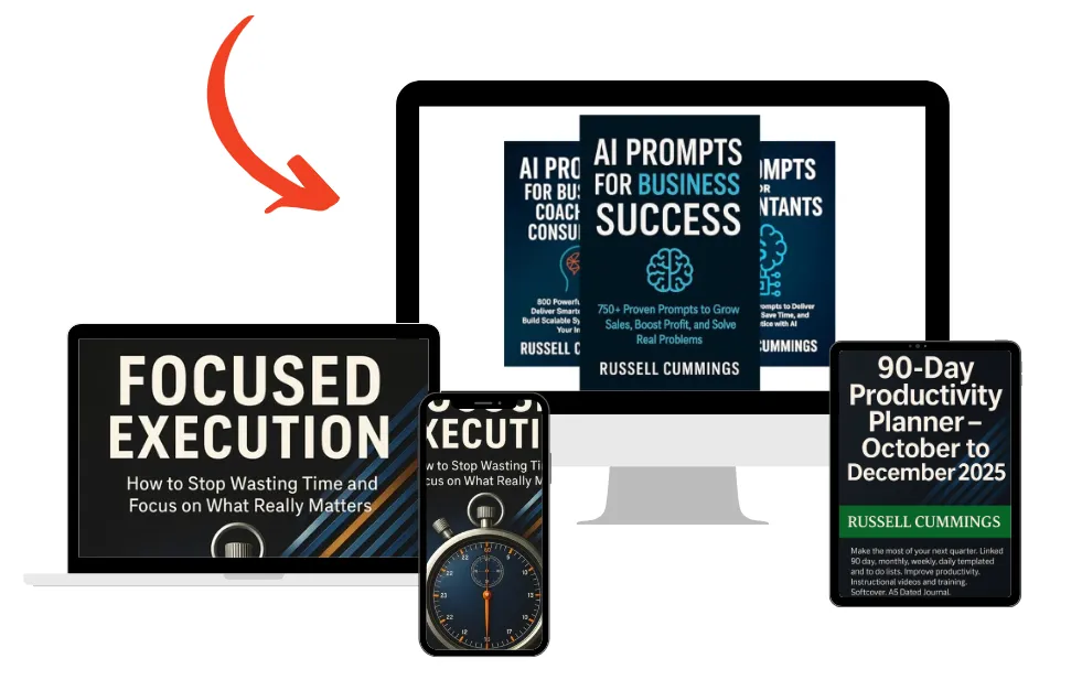 The biggest challenges our clients have with AI is what to ask it. To help Russ, created a series of AI prompt libraries that include a range of prompts to help you navigate through a variety of scenarios. Accelerate your results with our growing collection of AI Prompt Libraries – real words tested prompts for ChatGPT, Co-pilot and other AI Tools to streamline work, increase productivity and spark new ideas. Each book contains approximately 700 prompts tailored to your specific industry, role or situation. Simply “cut and paste”, tailor for your situation to get amazing result.