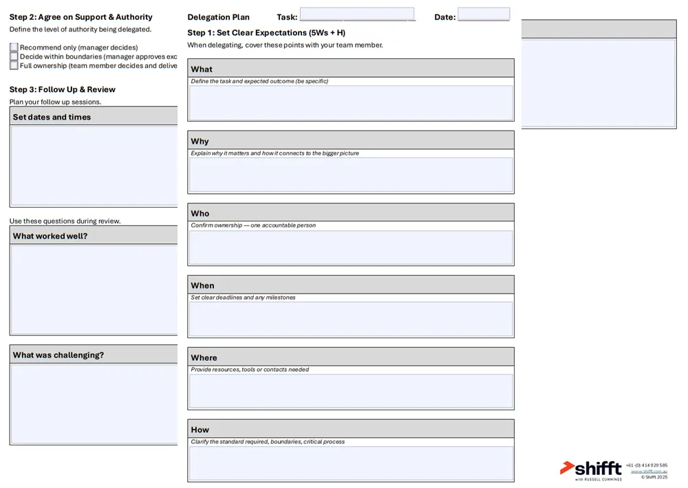 At SHIFFT, we believe that performance improvement starts with focus — on what matters most, and on helping people do their best work. In this first edition, we’re looking at two key leadership skills that can transform how you and your team operate every day: delegation and time management.